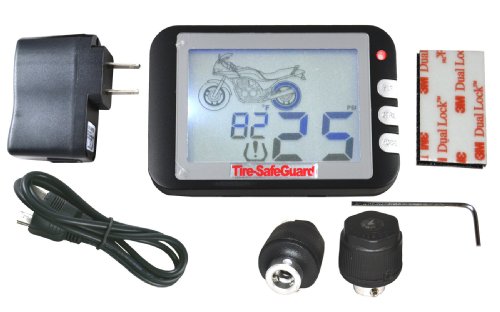 This tire pressure monitoring system for motorcycles shows tire pressure and temperature at all times. It alerts users to abnormal tire position as well as low and high tire pressure levels with alarm icons, red light, and an audible warning. The high pressure, high temperature, and per axle low pressure warning levels are user-adjustable. This item supports PSI/Bar and Fahrenheit/Celsius measurement units (user selectable). The light-weighted tire sensor (.45oz) is waterproof and its battery is user-replaceable. This item supports 2 or 3 wheeled motorcycles with an optional 2-wheeled trailer (user configurable).